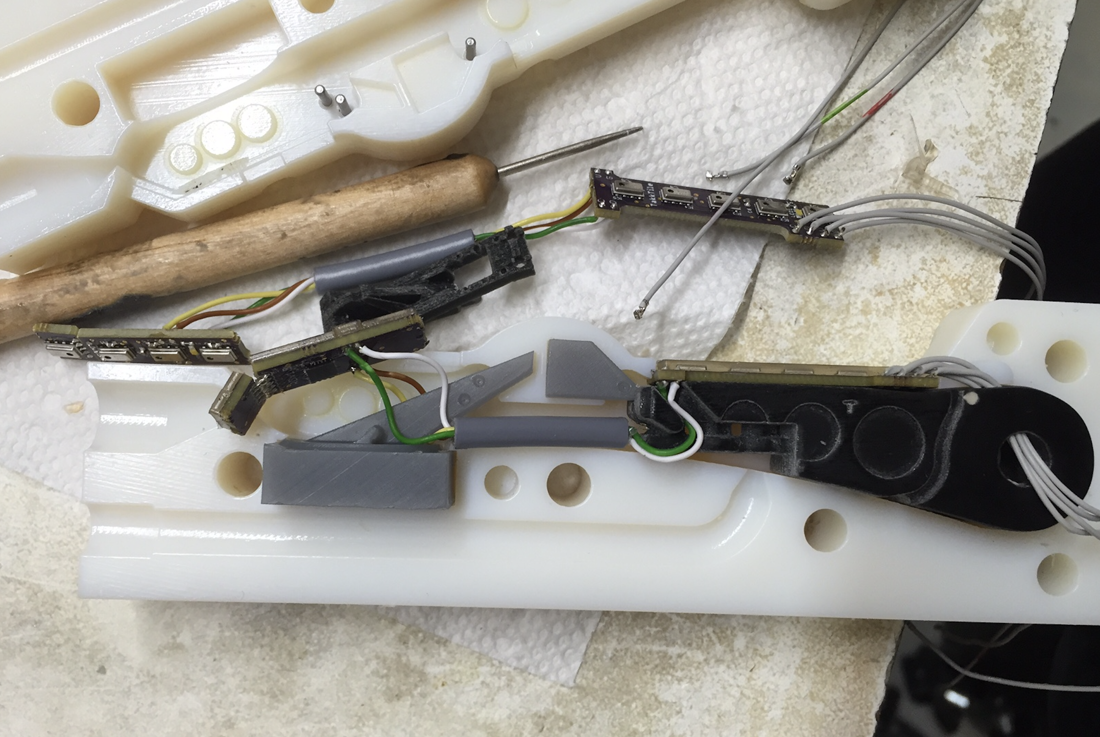 RightHand Robotics develops compliant end of arm grippers for robotic and industrial applications. I worked with their engineering team for multiple years to help with mold design and produce parts using short volume production techniques like RTV overmolding, potting, and machining. CLEAR design lab essentially acted as a contract manufacturer for some of their components and subassemblies. I also designed and fabricated jigs and fixtures for machining operations on cast resin components.