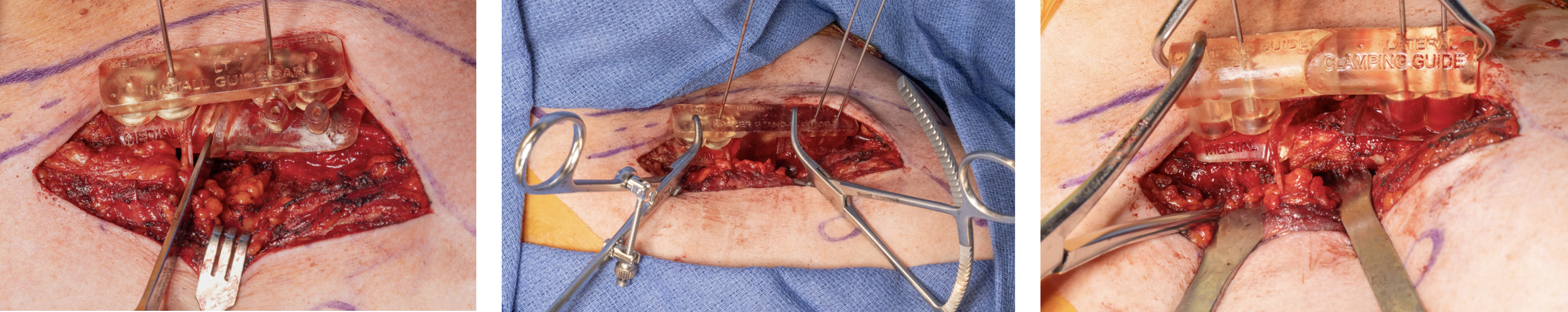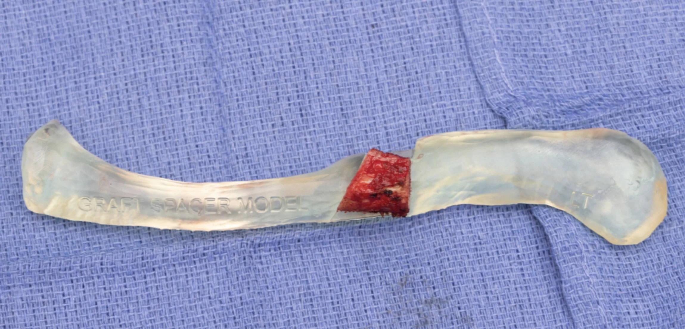 As part of Mayo Clinic’s Anatomic Modeling Unit, I design various guides for surgical cases, like this series of 3D printed guides for osteotomy and graft placement for a clavicle malunion corrective surgery. The plan is developed with the lead surgeon for the case and one or more clinical engineers. In this instance the case requires guides for performing osteotomies on the graft and the malunion, distracting and rotating the lateral clavicle segment, installing an autograft, and then clamping that graft in place while the site is plated. This guide set is stackable, allowing the initial osteotomy guide to be located and fixated to the bone and remain in place through subsequent steps while additional guide elements are stacked onto those bases to perform pre-planned rotation, distraction, graft placement, and clamping.